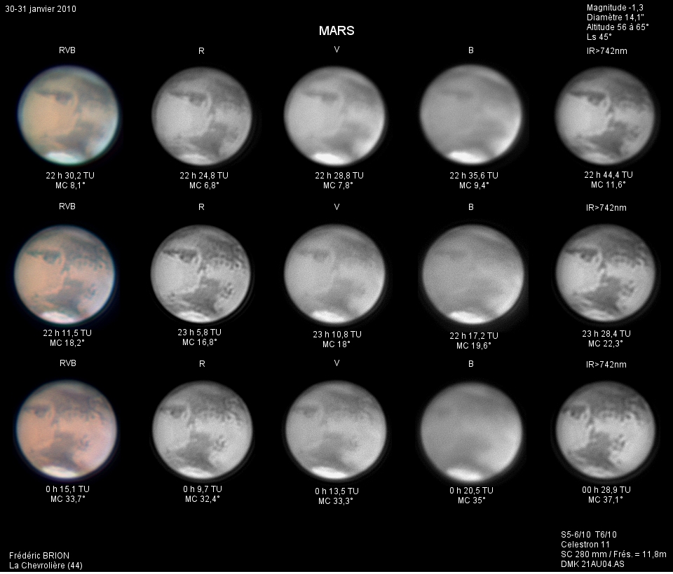 - Commentaire : On voit nettement un front nuageux se déplacer durant les 2H30 de séance, au nord de Mare Acidalium.