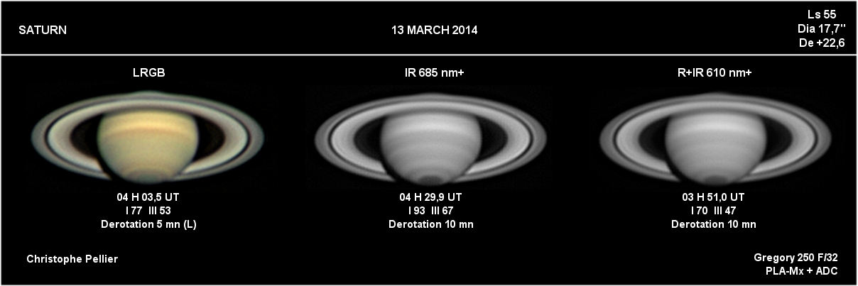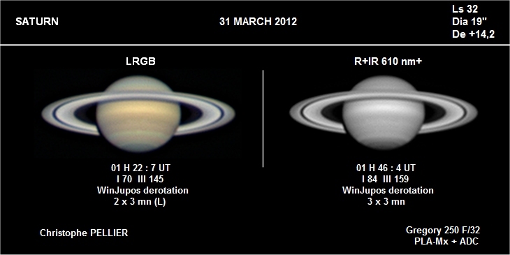 • Paramètres de prise de vue : Films SER réalisés avec filtres LRVB astronomik + + 685 Baader + RG610 Baader et correcteur de dispersion atmosphérique